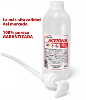 Envase de 1 Litro de Alta Calidad y Rotulado: Nuestro envase ha sido seleccionado pensando en la comodidad del usuario y en mantener la integridad de la acetona. Su capacidad de 5 litros es ideal para trabajos que requieren una cantidad significativa del solvente sin la necesidad de reposiciones frecuentes.